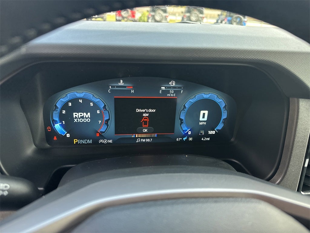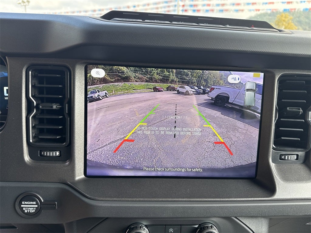 Equipment Group 332A Mid Package (2-Door Intelligent Access w/Lock/Unlock, Ambient Footwell Lighting, Connected Navigation, Dr & Pass Illuminated Sliding Visor Vanity Mirrors, Dual Smart Charging USB Ports, Dual-Zone Electronic Automatic Temperature Control, Front Row Heated Seats, Power Outlet - Back Side of Center Floor Console, and Rear Parking Sensors), 4-Wheel Disc Brakes, 4.7 Axle Ratio, 7 Speakers, ABS brakes, Air Conditioning, Alloy wheels, AM/FM radio: SiriusXM with 360L, AM/FM Stereo, Auto High-Beam Headlamps, Auto High-beam Headlights, Auto-dimming Rear-View mirror, BLIS Blind Spot Information System, Brake assist, Carbonized Gray Molded-In-Color Hard Top, Compass, Delay-off headlights, Door Storage Bags, Driver door bin, Driver vanity mirror, Dual front impact airbags, Dual front side impact airbags, Electronic Stability Control, Emergency communication system: 911 Assist, Exterior Parking Camera Rear, Ford Performance Heavy-Duty Modular Front Bumper, Front anti-roll bar, Front Bucket Seats, Front Center Armrest, Front fog lights, Front reading lights, Front wheel independent suspension, Fully automatic headlights, Heated door mirrors, Heated front seats, Heated steering wheel, Illuminated entry, Integrated roll-over protection, Internet access capable: FordPass Connect, Lane-Keeping System, Leather Shift Knob, Low tire pressure warning, Marine Grade Vinyl Heated Bucket Seats, Occupant sensing airbag, Outside temperature display, Overhead airbag, Overhead console, Panic alarm, Passenger door bin, Passenger vanity mirror, Power door mirrors, Power steering, Power windows, Pre-Collision Assist w/Automatic Emergency Braking, Radio data system, Rear-View Camera, Rear-Window Defroster & Washer, Remote keyless entry, Security system, SiriusXM w/360L, Speed control, Split folding rear seat, Steering wheel mounted audio controls, SYNC 4, Tachometer, Telescoping steering wheel, Tilt steering wheel, Traction control, Trip computer, Variably intermittent wipers, Voltmeter, and Wheels: 17 Carbonized Gray-Painted Aluminum.