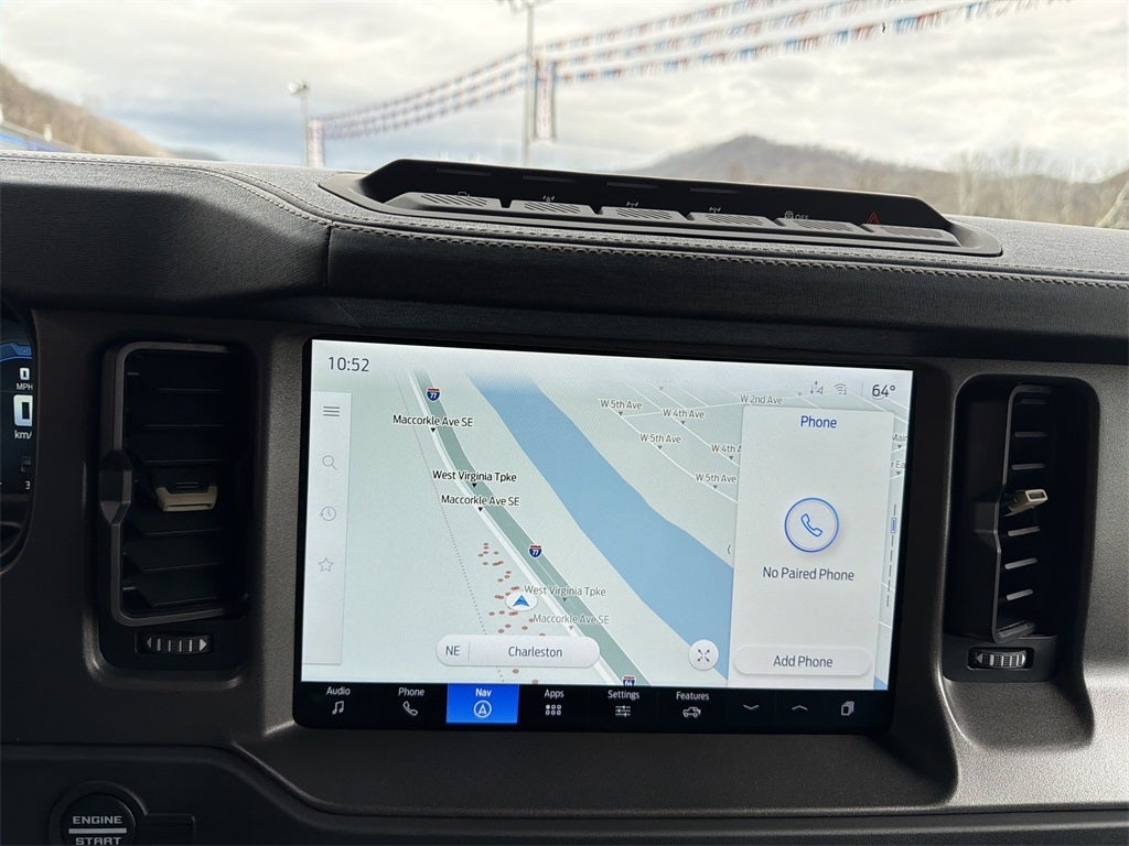 Black Appearance Package (Black Molded-In-Color Door Handles, Black Molded-In-Color Fender Flares, Black Molded-In-Color Sideview Mirror Caps, and Black-Painted Molded-In-Color Grille), Equipment Group 334A Lux Package (2-Door Intelligent Access w/Lock/Unlock, 360-Degree Camera, Adaptive Cruise Control, Ambient Footwell Lighting, Connected Navigation, Dr & Pass Illuminated Sliding Visor Vanity Mirrors, Dual Smart Charging USB Ports, Dual-Zone Electronic Automatic Temperature Control, Evasive Steering Assist, Front Parking Sensors, Front Row Heated Seats, Information on Demand Panel, Power Outlet - Back Side of Center Floor Console, Radio: B&O Sound System by Bang & Olufsen, Rear Parking Sensors, Sideview Mirrors, and Universal Garage Door Opener), 4-Wheel Disc Brakes, 4.7 Axle Ratio, 7 Speakers, ABS brakes, Air Conditioning, Alloy wheels, AM/FM radio: SiriusXM with 360L, AM/FM Stereo, Auto High-Beam Headlamps, Auto High-beam Headlights, Auto-dimming Rear-View mirror, BLIS Blind Spot Information System, Brake assist, Compass, Delay-off headlights, Door Storage Bags, Driver door bin, Driver vanity mirror, Dual front impact airbags, Dual front side impact airbags, Electronic Stability Control, Emergency communication system: 911 Assist, Exterior Parking Camera Rear, Ford Performance Heavy-Duty Modular Front Bumper, Front anti-roll bar, Front Bucket Seats, Front Center Armrest, Front fog lights, Front reading lights, Front wheel independent suspension, Fully automatic headlights, Hard Top Sound Deadening Headliner, Heated door mirrors, Heated front seats, Heated steering wheel, Illuminated entry, Integrated roll-over protection, Internet access capable: FordPass Connect, Lane-Keeping System, Leather Shift Knob, Low tire pressure warning, Marine Grade Vinyl Heated Bucket Seats, Occupant sensing airbag, Outside temperature display, Overhead airbag, Overhead console, Panic alarm, Passenger door bin, Passenger vanity mirror, Power door mirrors, Power steering, Power windows, Pre-Collision Assist w/Automatic Emergency Braking, Radio data system, Rear-View Camera, Rear-Window Defroster & Washer, Remote keyless entry, Security system, Shadow Black Painted Hard Top, SiriusXM w/360L, Speed control, Split folding rear seat, Steering wheel mounted audio controls, SYNC 4, Tachometer, Telescoping steering wheel, Tilt steering wheel, Traction control, Trip computer, Variably intermittent wipers, Voltmeter, and Wheels: 17 Carbonized Gray-Painted Aluminum. Price includes: $2500 - Retail Customer Cash. Exp. 03/31/2026