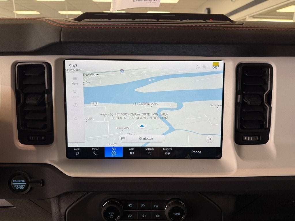 ABS brakes, Active Cruise Control, Alloy wheels, Compass, Electronic Stability Control, Front dual zone A/C, Heated door mirrors, Heated front seats, Illuminated entry, Low tire pressure warning, Navigation System, Remote keyless entry, Traction control, 12 Speakers, 4-Wheel Disc Brakes, Air Conditioning, AM/FM radio: SiriusXM with 360L, Auto High-beam Headlights, Auto-dimming Rear-View mirror, Automatic temperature control, Brake assist, Connected Navigation, Convertible HardTop, Convertible roof lining, Delay-off headlights, Driver door bin, Driver vanity mirror, Dual front impact airbags, Dual front side impact airbags, Emergency communication system: 911 Assist, Exterior Parking Camera Rear, Front anti-roll bar, Front Bucket Seats, Front Center Armrest, Front reading lights, Front wheel independent suspension, Fully automatic headlights, Garage door transmitter, Glass rear window, Heated steering wheel, Integrated roll-over protection, Leather Shift Knob, Navigation system: Connected Navigation, Occupant sensing airbag, Outside temperature display, Overhead airbag, Overhead console, Panic alarm, Passenger door bin, Passenger vanity mirror, Power door mirrors, Power steering, Power windows, Radio data system, Radio: B&O Sound System by Bang & Olufsen, Rear anti-roll bar, Rear window defroster, Rear window wiper, Security system, SiriusXM w/360L, Speed control, Split folding rear seat, Steering wheel mounted audio controls, SYNC 4, Tachometer, Telescoping steering wheel, Tilt steering wheel, Trip computer, Turn signal indicator mirrors, Unique Vinyl Bucket Seats, Variably intermittent wipers, Voltmeter, and Wheels: 17 Unique Matte Black-Painted Alloy.