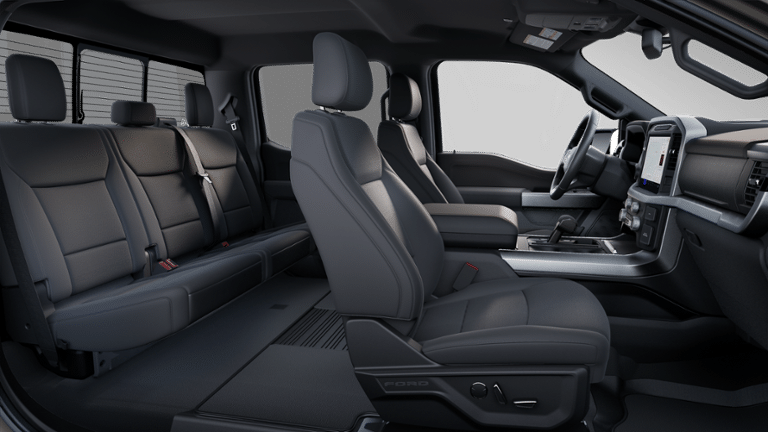 Bed Utility Package (4 Pickup Box Tie-Down Plates, LED Box Lighting, and Tailgate Step w/Tailgate Work Surface), Equipment Group 302A Mid, FX4 Off-Road Package, 4-Wheel Disc Brakes, 6 Speakers, ABS brakes, Air Conditioning, Alloy wheels, AM/FM radio: SiriusXM with 360L, Auto High-beam Headlights, BlueCruise (Equipment + 1-Year Plan), Brake assist, Bumpers: chrome, Chrome wheels, Cloth 40/20/40 Front Seat, Compass, Delay-off headlights, Driver door bin, Driver vanity mirror, Dual front impact airbags, Dual front side impact airbags, Electronic Stability Control, Emergency communication system: SYNC 4 911 Assist, Front anti-roll bar, Front Center Armrest, Front fog lights, Front License Plate Bracket, Front reading lights, Front wheel independent suspension, Fully automatic headlights, Heated door mirrors, Illuminated entry, Internet access capable: FordPass Connect 5G, Low tire pressure warning, Occupant sensing airbag, Outside temperature display, Overhead airbag, Overhead console, Panic alarm, Passenger door bin, Passenger vanity mirror, Power door mirrors, Power steering, Power windows, Radio data system, Radio: AM/FM Stereo w/SiriusXM 360L, Rear Parking Sensors, Rear reading lights, Rear step bumper, Rear window defroster, Remote keyless entry, Security system, Speed control, Split folding rear seat, Steering wheel mounted audio controls, SYNC 4 w/Enhanced Voice Recognition, Tachometer, Telescoping steering wheel, Tilt steering wheel, Traction control, Trip computer, Variably intermittent wipers, Voltmeter, and Wheels: 18 Chrome-Like PVD.