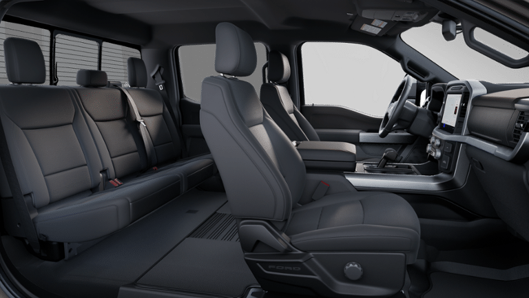 Bed Utility Package (4 Pickup Box Tie-Down Plates, LED Box Lighting, and Tailgate Step w/Tailgate Work Surface), Equipment Group 302A Mid, FX4 Off-Road Package, Mobile Office Package (Console Worksurface and Partitioned Lockable Rear Storage), Tow/Haul Package, 4-Wheel Disc Brakes, 6 Speakers, ABS brakes, Air Conditioning, Alloy wheels, AM/FM radio: SiriusXM with 360L, Auto High-beam Headlights, Brake assist, Bumpers: chrome, Chrome wheels, Cloth 40/20/40 Front Seat, Compass, Delay-off headlights, Driver door bin, Driver vanity mirror, Dual front impact airbags, Dual front side impact airbags, Electronic Stability Control, Emergency communication system: SYNC 4 911 Assist, Front anti-roll bar, Front Center Armrest, Front fog lights, Front reading lights, Front wheel independent suspension, Fully automatic headlights, Heated door mirrors, Illuminated entry, Low tire pressure warning, Manual-Folding Heated Pwr Glass Trailer Tow Mirror, Occupant sensing airbag, Outside temperature display, Overhead airbag, Overhead console, Panic alarm, Passenger door bin, Passenger vanity mirror, Power door mirrors, Power steering, Power windows, Radio data system, Radio: AM/FM Stereo w/SiriusXM 360L, Rear Parking Sensors, Rear reading lights, Rear step bumper, Rear window defroster, Remote keyless entry, Security system, Speed control, Split folding rear seat, Steering wheel mounted audio controls, SYNC 4 w/Enhanced Voice Recognition, Tachometer, Telescoping steering wheel, Tilt steering wheel, Traction control, Trip computer, Variably intermittent wipers, Voltmeter, and Wheels: 18 Chrome-Like PVD.