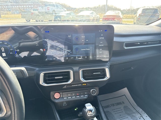 RWD performance powered by a 5.0L V8 paired to a 10-speed automatic and 3.15 limited-slip axle. Equipped with Equipment Group 401A, Nite Pony Package, and Security Package. Features include navigation, SYNC 4 infotainment, wireless connectivity, B&O premium audio, memory driver seat & mirrors, leather trimmed interior, heated steering wheel, dual zone climate control, and climate controlled heated/cooled front seats. Safety tech includes Ford Co-Pilot360 Assist+ with pre collision assist, lane keeping aid, rear parking sensors, and backup camera. Finished with 19 black wheels and performance brake system.